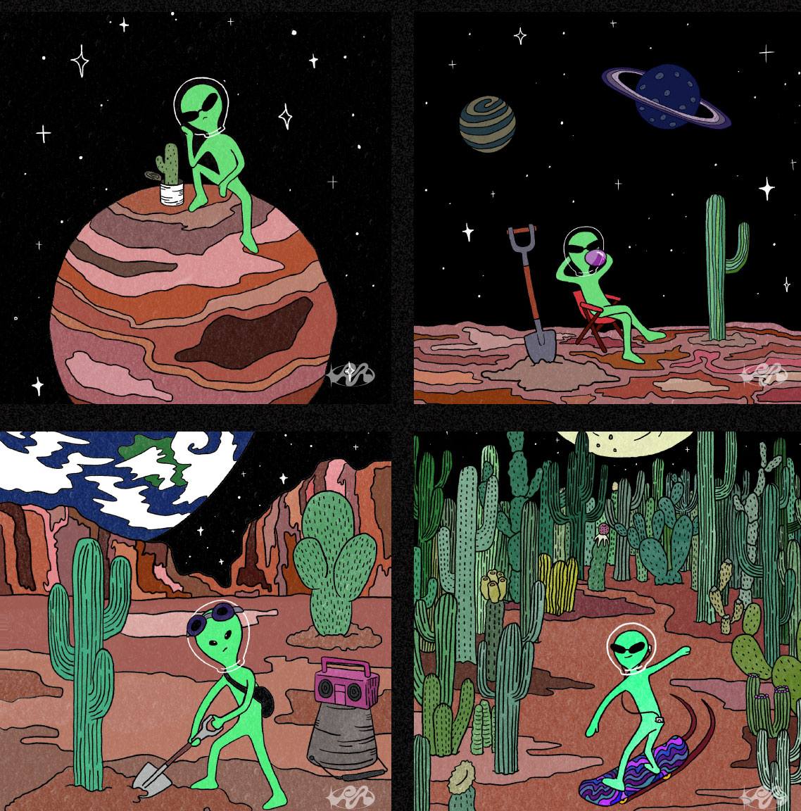 팟봉지 안에 다양한 화분과 물건을 담아 보관해보세요. POM의 모티브인 식물과 행성을